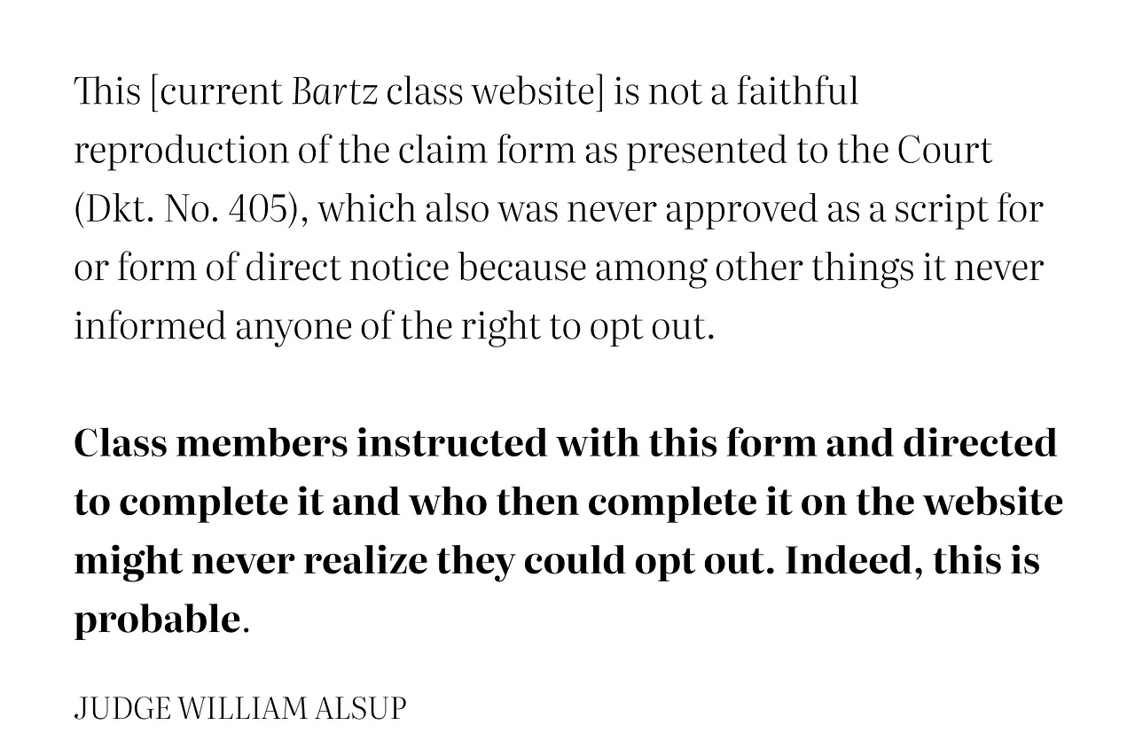 Judge Alsup orders Bartz v. Anthropic class website IMMEDIATELY disabled until fixes made to respect class members' right to opt out