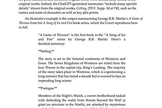Judge Stein denies OpenAI's motion to dismiss. Game of Thrones summary generated by ChatGPT is potentially infringing.
